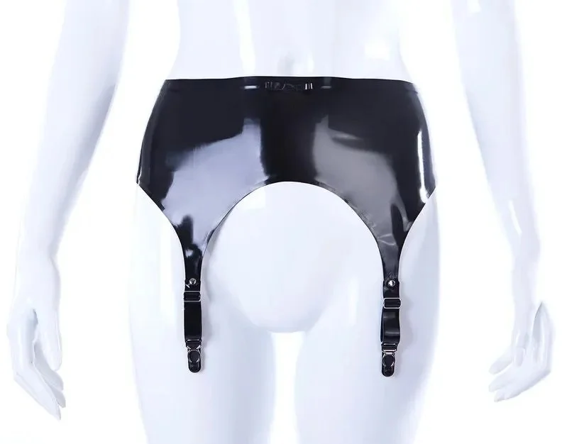 Adjustable Suspenders: It features four adjustable garter straps with silver metal clips that can be used to securely hold up both latex and classic nylon stockings.